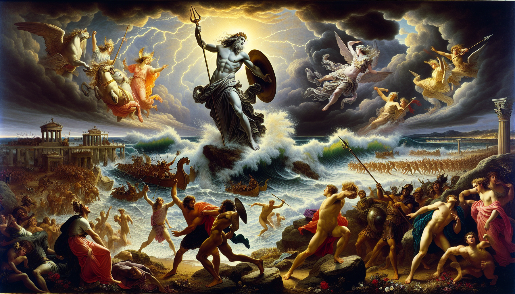 포세이돈은 제우스의 형으로 바다의 신과 지진의 신으로 알려져 있습니다. 그는 물과 바다의 지배자로, 그의 신성과 강력함은 항해하는 사람들에게 중요한 존재로 여겨졌습니다. 포세이돈은 삼지창을 가지고 있으며, 이를 통해 바다의 힘을 상징적으로 나타냅니다. 그는 때때로 폭풍을 일으키고 지진을 일으켜 인간들에게 두려움을 안기기도 합니다. 포세이돈은 또한 흥미로운 전설의 주인공으로, 그의 사랑 이야기도 여러 가지 있습니다. 포세이돈과 다양한 신화 속 인물들과의 이야기들은 바다의 깊은 미스터리와 힘을 잘 나타내줍니다. 그의 신화 속에서는 때로는 악당처럼 행동하고, 때로는 영웅적인 역할을 하며 변화를 보여줍니다.